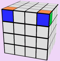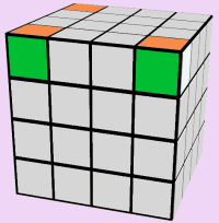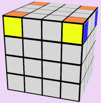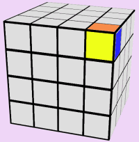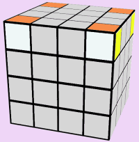 Okay, here we go, the first step in solving the Rubik's Revenge. When you finish this step your cube will look like this: